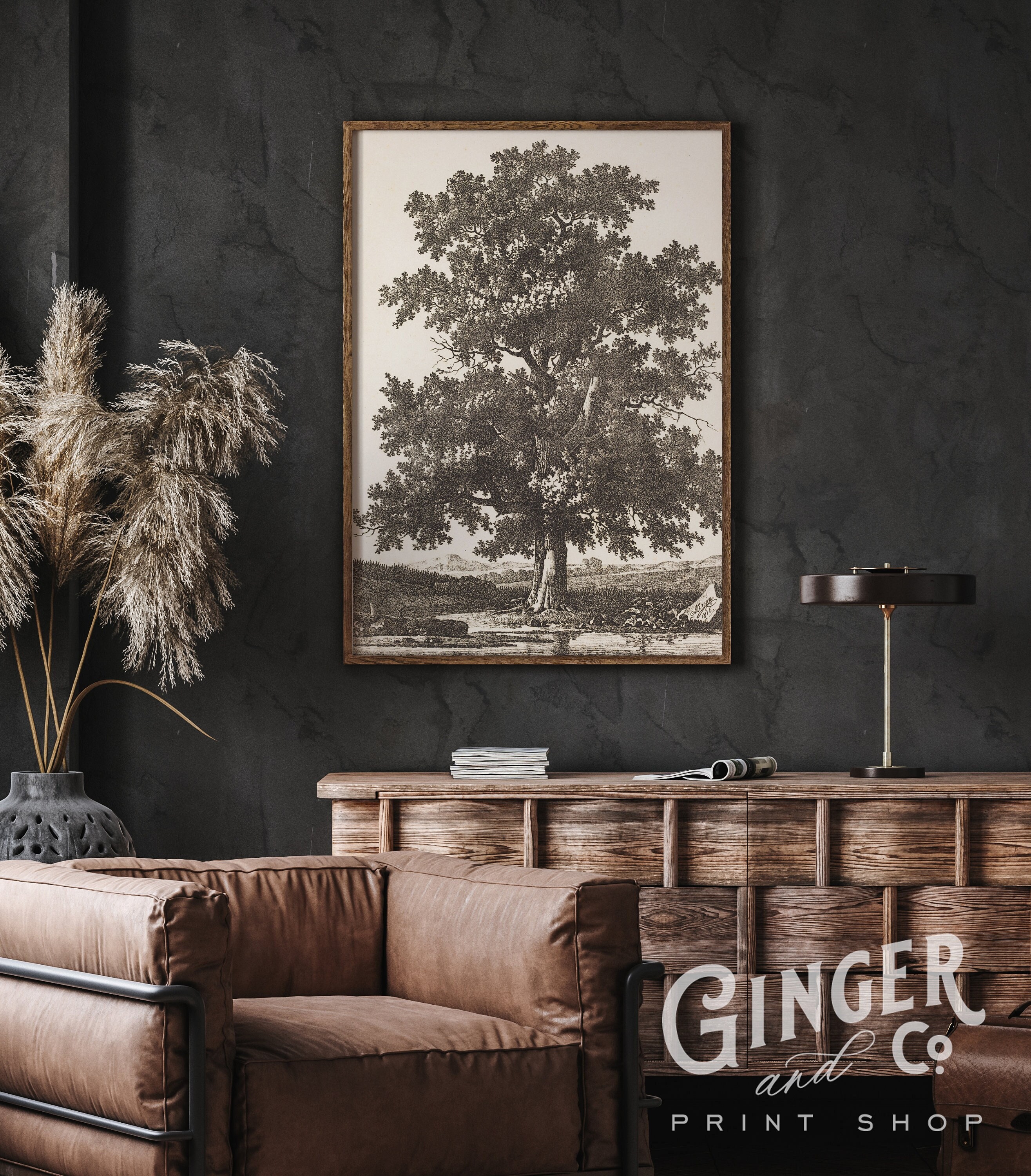 Oak Tree Vintage Fine Art Drawing Framed Digitally Etsy